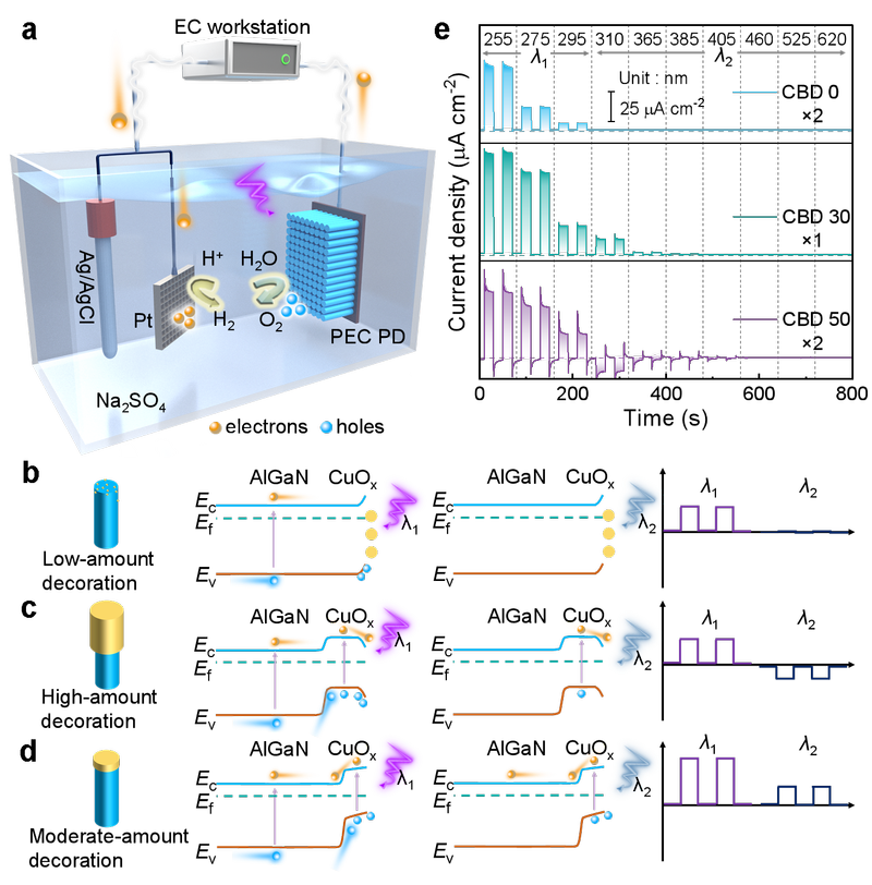 近日,我院GaN-X Lab課題組在氮化鎵基紫光探測領域取得重要研究進展,通過構建II型AlGaN/CuOx異質結,利用...