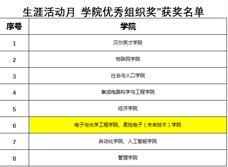 近日,南京郵電大學2024-2025學年“優秀班主任”評選結果正式揭曉。全校共30位教師獲此殊榮,其中,電子與光學工程學院、柔性電子(未來技術)學院共有四位教師光榮入選,分別是王始彥、李雙德、周緯、陳青云。本次評選注重學生的真實反饋,根據“學生評價情況”(即班主任工作測評分數)和班主任提交的各類履職材料,對各位班主任老師的履職情況進行綜合評定,最終擇優入選。電光柔院此次能夠有四位教師脫穎而出,榮獲校級“優秀班主任”稱號,是學校對學院班主任工作整體水平和育人實效的高度認可。入選老師在日常工作中,始終堅守育人初心,恪盡職守,在思想引領、學業指導、生涯規劃、班級管理等方面傾注了大量心力,贏得了學生一致好評。此次優異成績的取得是學院長期以來堅持立德樹人根本任務、不斷加強和改進班主任工作的成果體現。電光柔院將以此為契機,持續深化班主任隊伍建設,充分發揮優秀班主任的示范引領作用,不斷探索學生工作的新思路、新方法,努力提升人才培養質量,為學生的全面成長成才和學校的高質量發展做出更大貢獻。撰稿:祝騰審核:徐磊編輯:祝騰