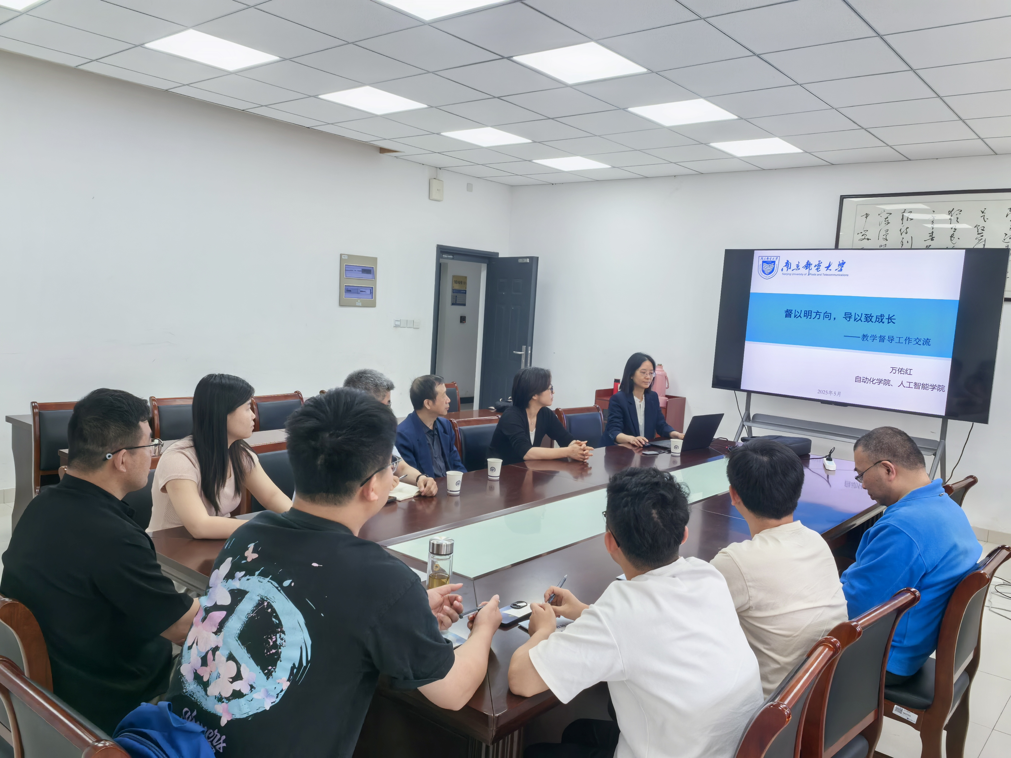 2025年5月7日下午,由我院主辦的督導講習營系列講座活動在電光學科樓A328會議室順利舉行。本次活動特邀自動化學院萬佑紅教授作題為《“督以明方向,導以致成長”——教學督導工作交流》的專題講座,通過線上線下同步開展的形式,吸引了全院教師積極參與。校教學督導蔡祥寶老師、學院督導組組長楊恒新老師出席線下會議,全院教師通過線上線下平臺共同學習研討。講座中,萬佑紅教授立足教學督導工作的實踐與創新,從“核心定位”“環節規范”“成效分析”三大維度展開系統闡述。她首先強調,教學督導應始終以服務教學、引導發展為宗旨,通過科學監督與精準指導,助力教師教學能力提升與教學改革深化。隨后,萬教授結合具體案例,詳細解讀了課堂教學、課程設計、考核評價等關鍵環節的質量標準與規范要求,并針對當前督導工作中存在的共性問題和改進方向提出建設性意見。 在互動環節,與會教師圍繞督導工作的實踐難點展開熱烈討論。校督導蔡祥寶老師指出,如何利用大數據分析、智能評課系統等新技術優化督導模式,同時平衡技術工具與人文關懷的關系,是未來督導工作的重要課題。萬教授對此回應稱,技術賦能需以教育本質為核心,督導工作應始終聚焦“以學生為中心”的育